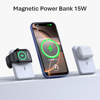 Magnetic 15W Power Bank 10000mAh with Built-in Phone Stand, 22.5W PD Fast Charging Portable Charger for Phone, iWatch and Earbuds