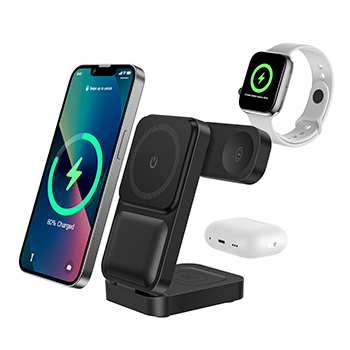 Branded 3-in-1 Foldable Fast Magnetic Wireless Charging Station 15W, Black or White