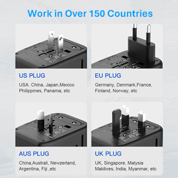 Built-in 4 types of international plugs(UK/US/EU/AU Plug) covers over 200 countries like US, Canada, Europe, Italy, France, Germany, UK, Ireland,