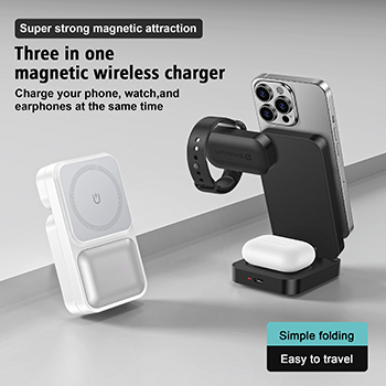Branded 3-in-1 Foldable Fast Magnetic Wireless Charging Station 15W, Black or White